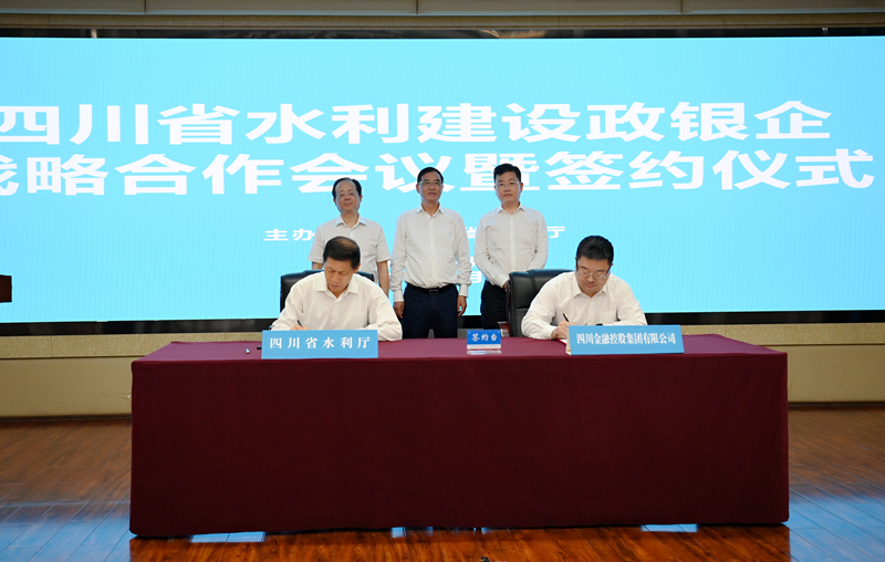 7月16日,四川省水利建設政銀企戰略合作會議暨簽約儀式舉行,四川省水利廳和中國農業發展銀行四川分行、中國農業銀行四川省分行、四川金融控股集團有限公司、四川銀行股份有限公司四大金融機構簽署戰略合作協議。這是四川省水利廳創新探索“政銀企1+3”四方合作機制以來,與首批金融機構簽署戰略合作協議,標志著四方合作機制取得突破性進展。下一步,水利廳和四家金融機構將加強深度合作,為四川重大水利工程建設和鄉村振興事業提供金融保障,為四川省水利發展集團和地方政府提升增信保障,在發展中實現政銀企各方共贏。