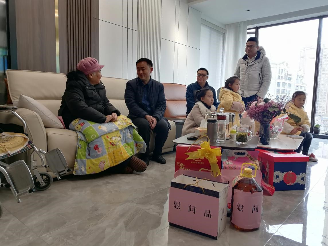 每到一名老黨員家中,吳軍都與老黨員及其家人親切交談,噓寒問暖,詳細(xì)詢問他們的身體狀況、生活情況,叮囑他們一定要好好保重身體,注意防寒保暖,并代表集團向他們送上慰問金、慰問品和美好祝福。同時,吳軍囑咐老黨員的家人照顧好老人的生活,鼓勵老干部們保持樂觀向上的精神面貌,提高晚年生活幸福指數(shù)。