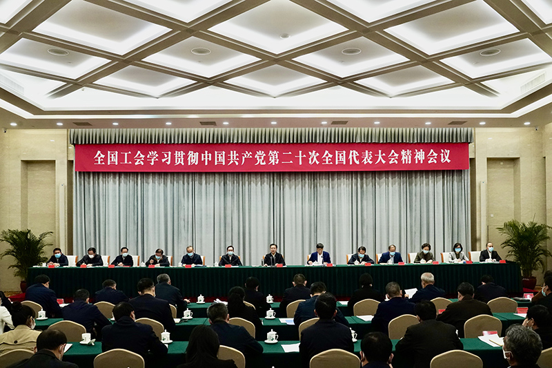 全國工會學習貫徹中國共產黨第二十次全國代表大會精神會議10月24日以電視電話會議形式召開。全國人大常委會副委員長、中華全國總工會主席王東明出席會議并講話,強調各級工會要把學習宣傳貫徹黨的二十大精神,作為當前和今后一個時期的首要政治任務,找準黨的二十大精神與工會工作的切入點和結合點,踔厲奮發、勇毅前行、團結奮斗,在新時代新征程上不斷開創黨的工運事業和工會工作新局面。