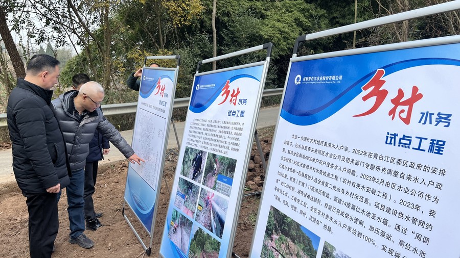 尹曉東一行首先前往青白江水業公司鄉村水務試點工程點位,查看了高位水池、加壓站運維及自來水到組到戶情況。