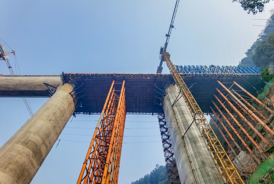 會(huì)詩(shī)溝渡槽位于宜賓市翠屏區(qū)思坡鎮(zhèn)會(huì)詩(shī)村,是向家壩灌區(qū)工程北總干渠第二流量段。該渡槽全長(zhǎng)240米,共6跨,單跨最高高度為76米,槽身為薄壁U型結(jié)構(gòu),是向家壩灌區(qū)北總干渠一期一步工程最高渡槽,也是項(xiàng)目建設(shè)的重難點(diǎn)控制性工程。