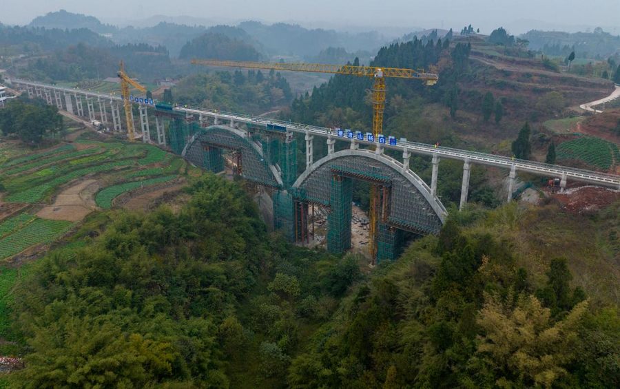 近日,向家壩灌區工程又迎來一個重要節點,北總干渠一期一步工程唯一一座雙拱式渡槽——白楊山渡槽最后一跨澆筑完成。