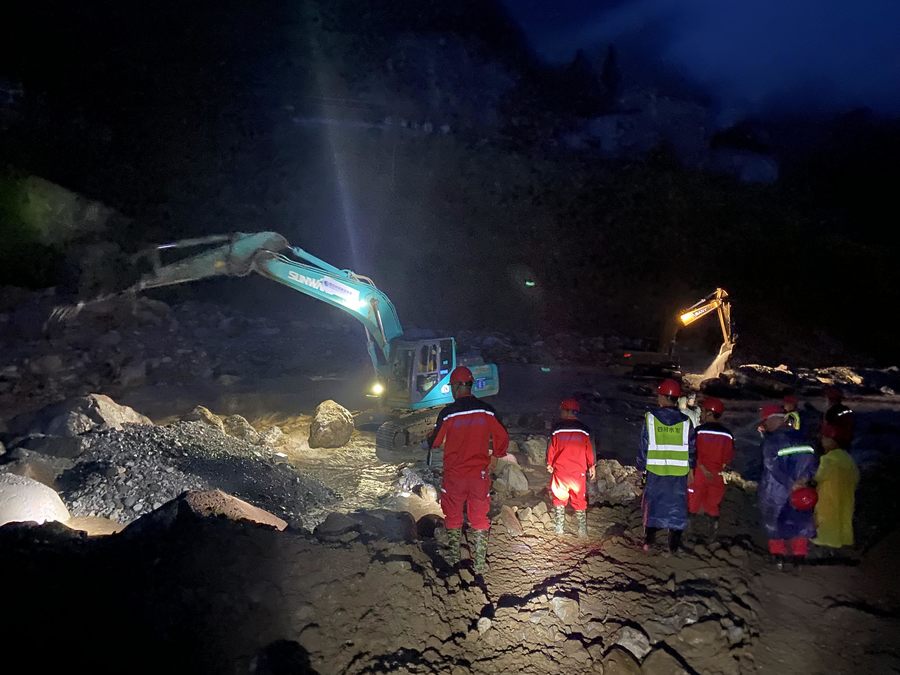 按集團(tuán)預(yù)案,項(xiàng)目部6名黨員迅速成立黨員突擊隊(duì),與項(xiàng)目部其他62名同志分成搶險(xiǎn)救援組、技術(shù)支援組、安全監(jiān)測(cè)組、后勤保障組,火速前往32km外的馬烈鄉(xiāng)新華村開展救援。
